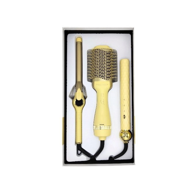 Avec Ce pack trio plus besoin d’aller attendre des heures chez la coiffeuse Ces une révolution pour vous les femmes Il contient une brosse soufflante un lisseur et un Bouc leur avec une qualité supérieure avec un prix imbattable son design très tendance idéal pour une mariée ou pour offrir Il est aussi parfait pour les professionnels pour la capacité de c appareils