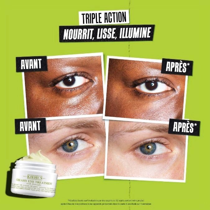 la crème best-seller pour un effet bonne mine instantané. Ce soin contour des yeux à l’avocat riche et crémeux hydrate en douceur la zone délicate du contour des yeux. Il agit en triple action dès la première application : il nourrit, lisse et illumine. Testé sous contrôle dermatologique et ophtalmologique, il est particulièrement adapté aux peaux sensibles du contour de l’œil. Grâce à sa formule multi-usages, utilisez-le en contour de l’œil matin et soir, en masque hydratant intense pendant 10 minutes, ou en base de maquillage pour un effet lisse et glowy. Sa texture unique et concentrée fond dès son application, cette formule crémeuse est l’une des préférées de la communauté Kiehl’s