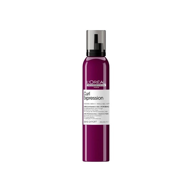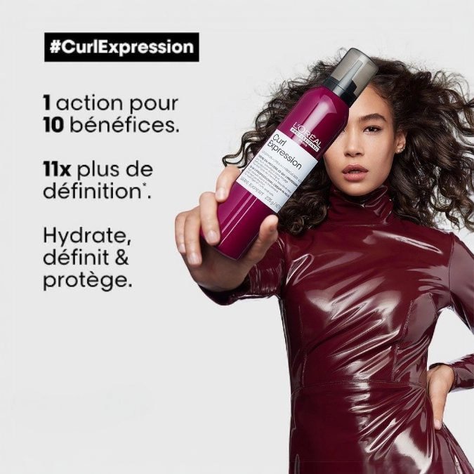 Coiffez et définissez vos boucles de manière professionnelle avec le Soin Multi-Bénéfices sans Rinçage avec Protection Thermique Curl Expression de L’Oréal Professionnel Paris. En un seul geste, cette Crème-en-mousse procure 10 bénéfices :
